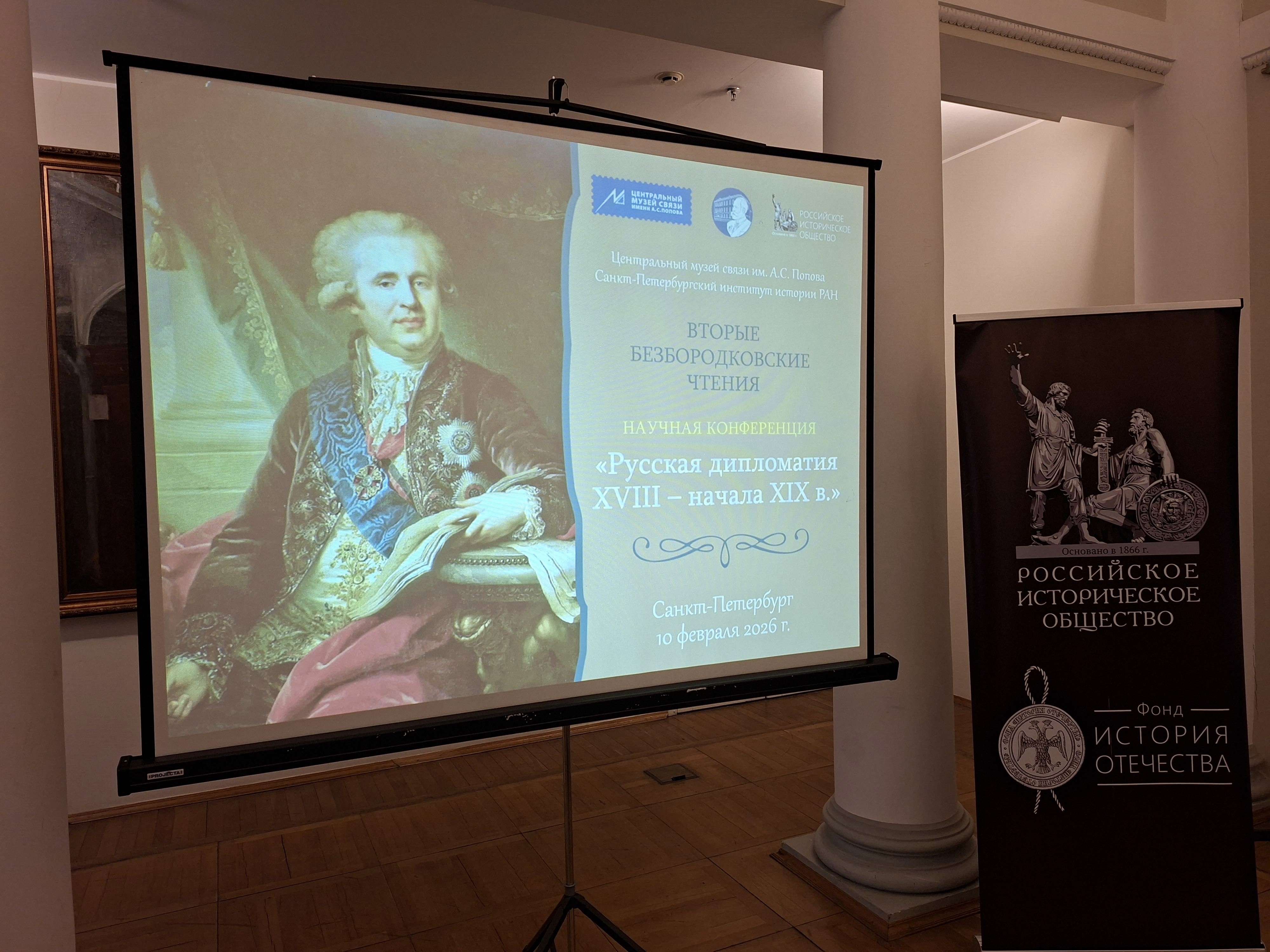 10 февраля 2026 г. в Центральном музее связи им. А.С.Попова состоялась Научная конференция «Русская дипломатия XVIII — начала XIX в.». Соорганизаторами мероприятия, проходившего в День дипломатического работника, выступили Санкт-Петербургский институт истории РАН и Центральный музей связи им. А.С.Попова.