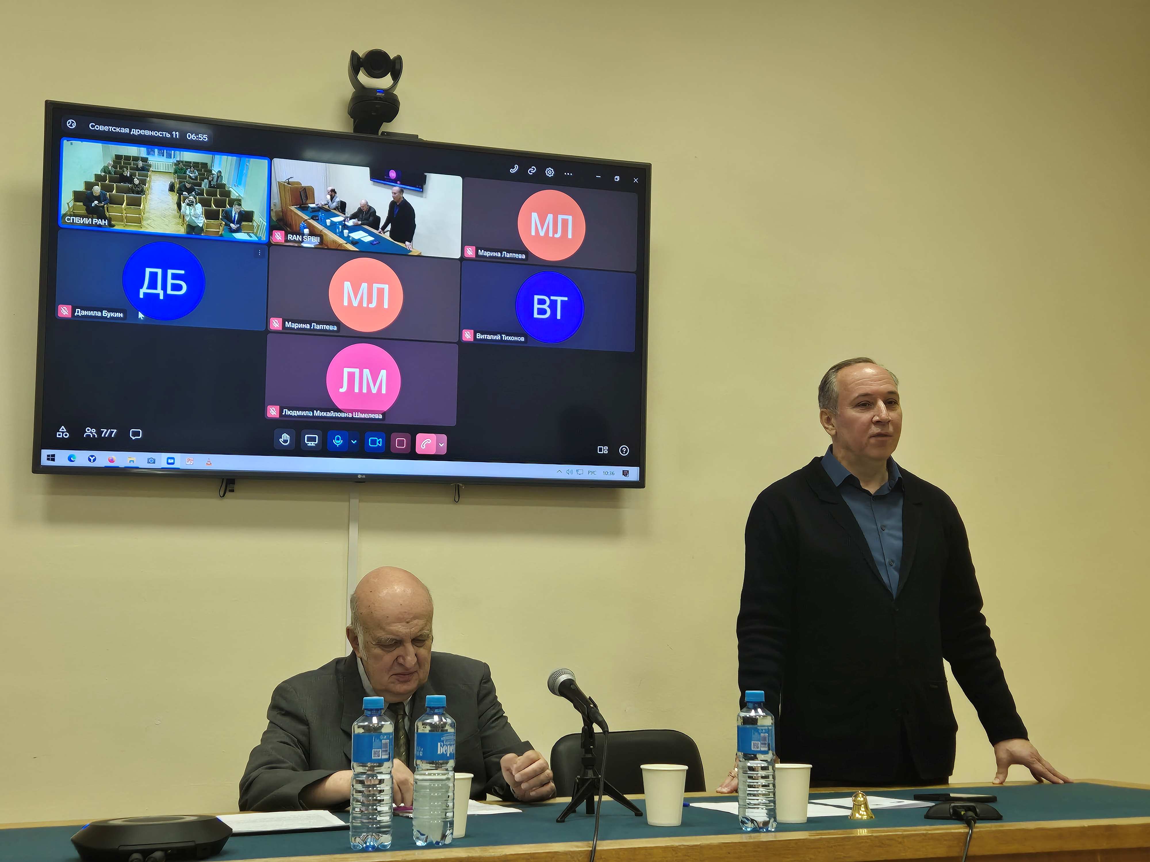 Во вступительном докладе г.н.с. Института всеобщей истории РАН С.Г.Карпюк рассмотрел достижения научного направления «Советская древность» за последнюю «пятилетку» и представил изданные коллективные и индивидуальные (И.А.Ладынина, С.Г.Карпюка, М.Н.Кирилловой) монографии.