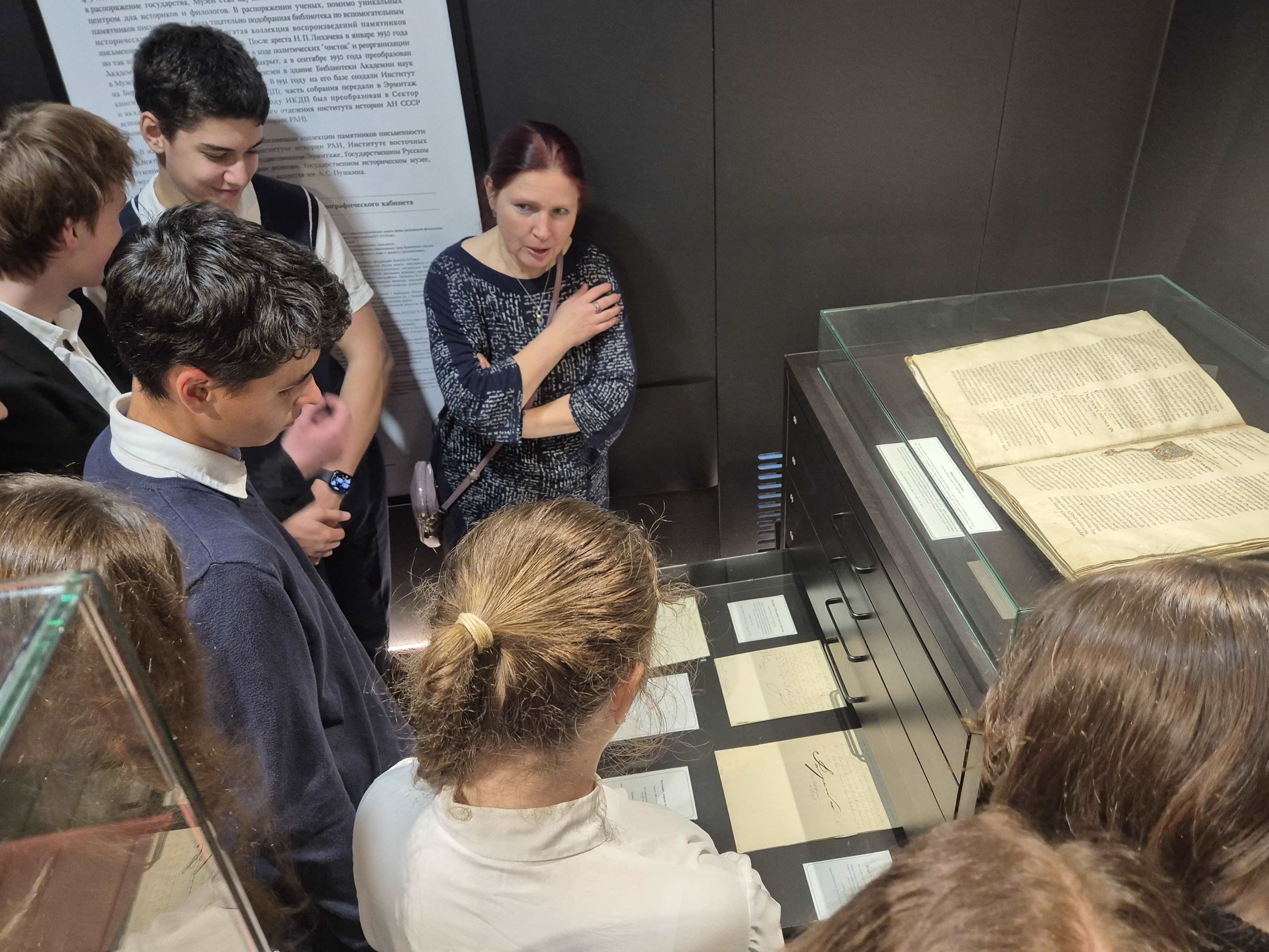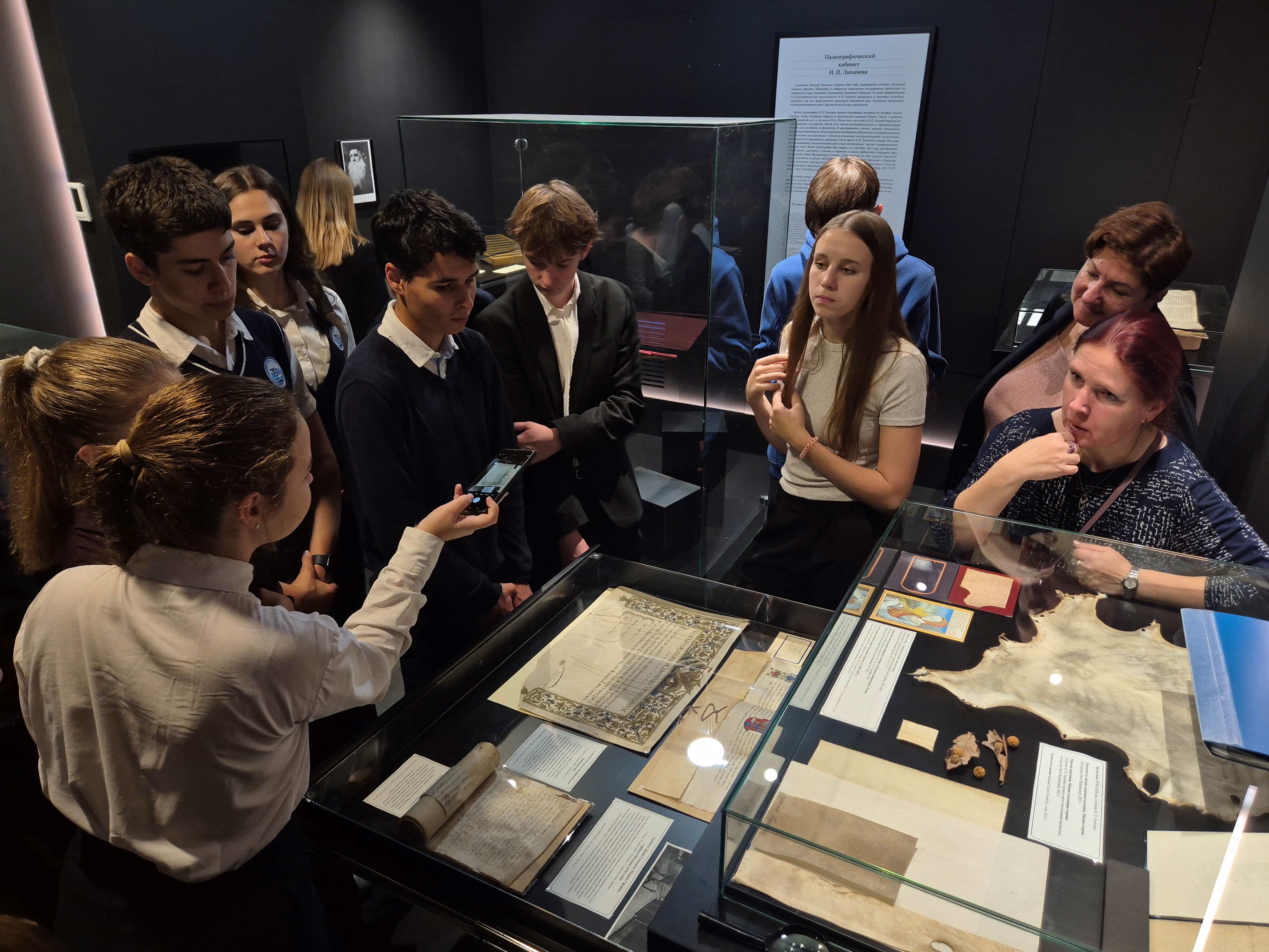 В рамках проекта «Факультет Общественных наук» в Санкт-Петербургском институте истории РАН 7 октября 2025 г. для старшеклассников гимназий № 67, № 70 и № 85 Петроградского района прошло учебно-методическое занятие «Историк и источники – сокровища коллекции Н.П.Лихачева». Встреча была посвящена истории создания коллекции Н.П.Лихачева и особенностям работы специалистов с рукописным наследием России и Европы.
